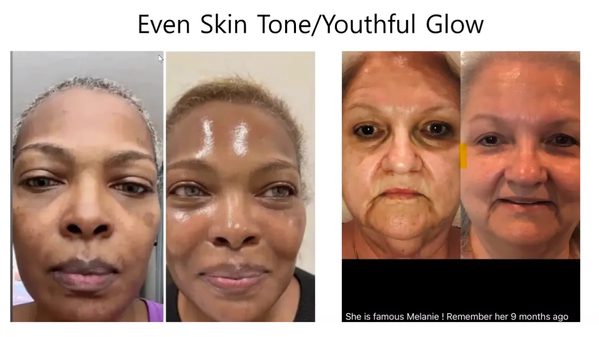 Notice the visible improvement in skin tone and the radiant, healthy glow achieved in just 14 days.